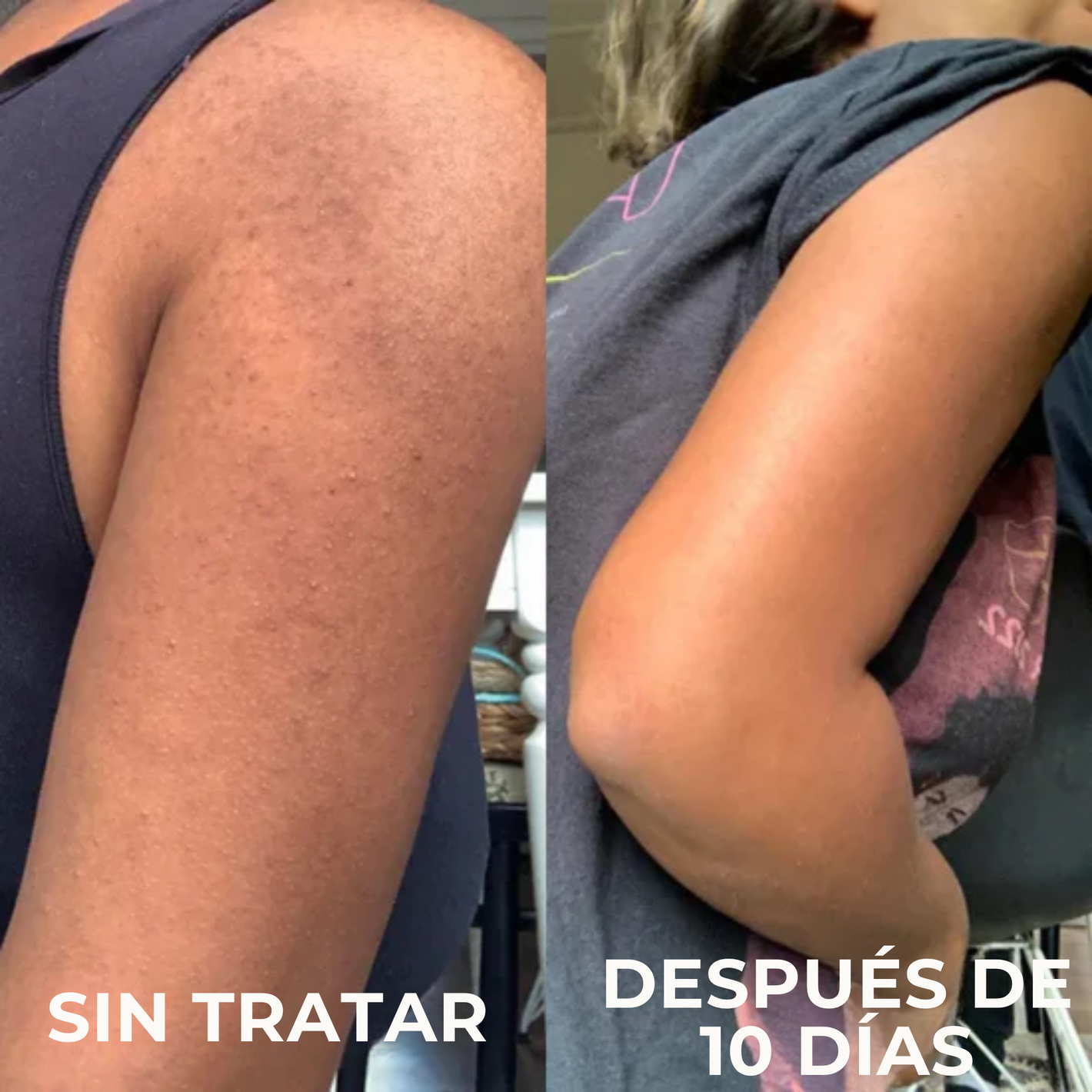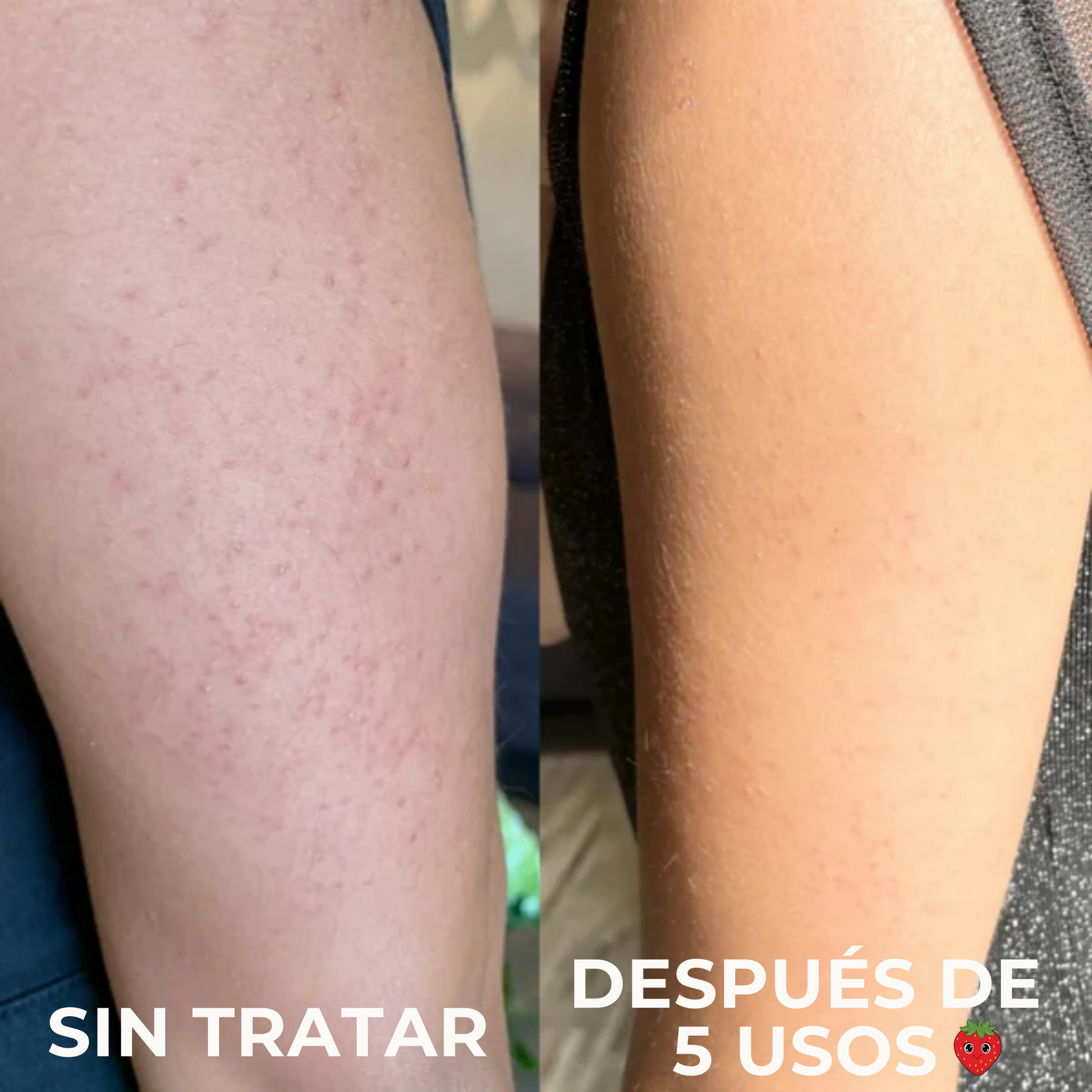 La mayoría de los usuarios notan una mejora significativa en la textura de la piel entre 1 y 4 semanas de uso constante, con una reducción considerable tanto de las protuberancias como del enrojecimiento a las 8 semanas. Los resultados individuales pueden variar según la gravedad de la queratosis pilaris, la constancia en la aplicación y las características de la piel de cada persona.
