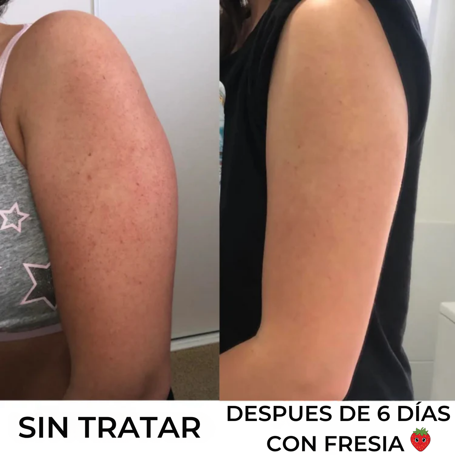 Sí! Aunque Fresia se desarrolló principalmente para la queratosis pilar, su fórmula es igualmente eficaz para la queratosis folicular que aparece tras el afeitado (comúnmente conocida como "piernas de frutilla"). El ácido salicílico ayuda a prevenir los vellos encarnados, mientras que los ingredientes antiinflamatorios reducen el enrojecimiento posterior al afeitado.