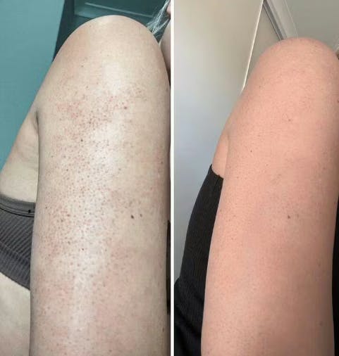 Fresia es el primer tratamiento formulado por dermatólogos, diseñado específicamente para tratar tanto la textura áspera como el enrojecimiento de la queratosis pilar. Nuestro complejo patentado de triple ácido actúa sobre la queratosis pilar desde su origen: la acumulación excesiva de queratina que obstruye los folículos pilosos y causa inflamación.